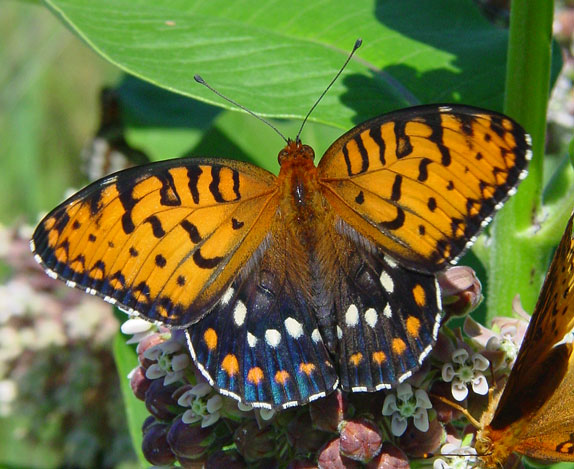 Large, with white-spotted black hindwings and bright orange forewings, these magnificent prairie butterflies are in danger of sliding into the abyss. Formerly widespread throughout the northeastern United States, there is now but a single viable colony remaining -- at Fort Indiantown Military Reservation in Pennsylvania. Consider joining NABA and helping conserve butterflies throughout North America.